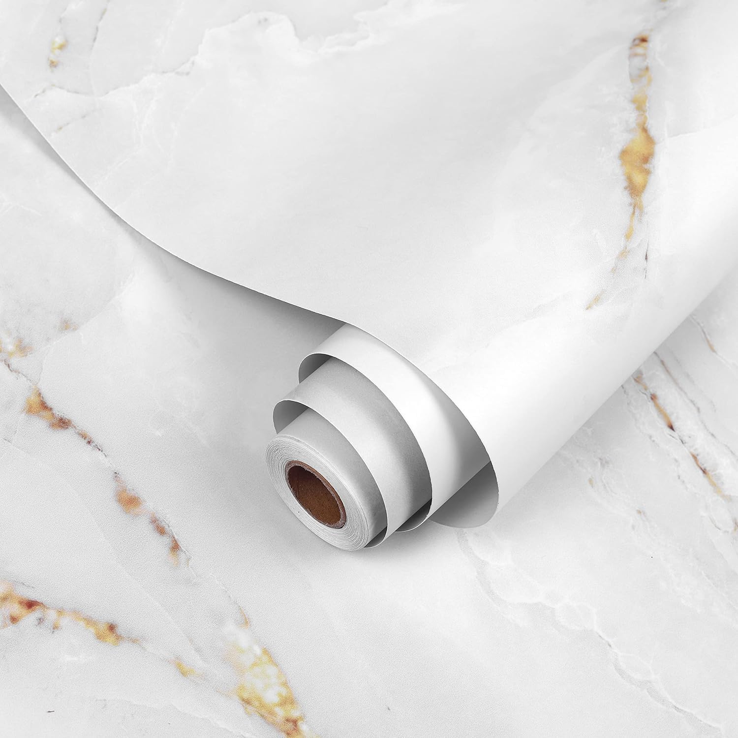 Anmon Marble Contact Paper for Countertop 17.7″ x 118″, Peel and Stick Wallpaper Thick for Cabinets, Self Adhesive Waterproof Wallpaper, Removable Matte White Gold Marble Wall Paper Roll Kitchen Wall
